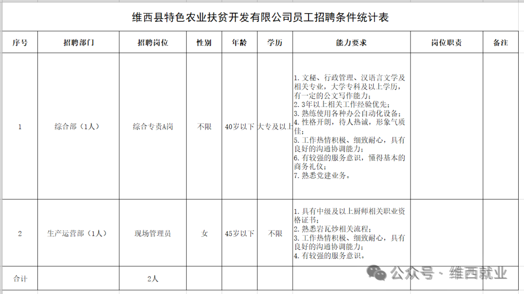 招聘由維西縣人力資源市場在“維西就業(yè)”微信公眾號發(fā)布。