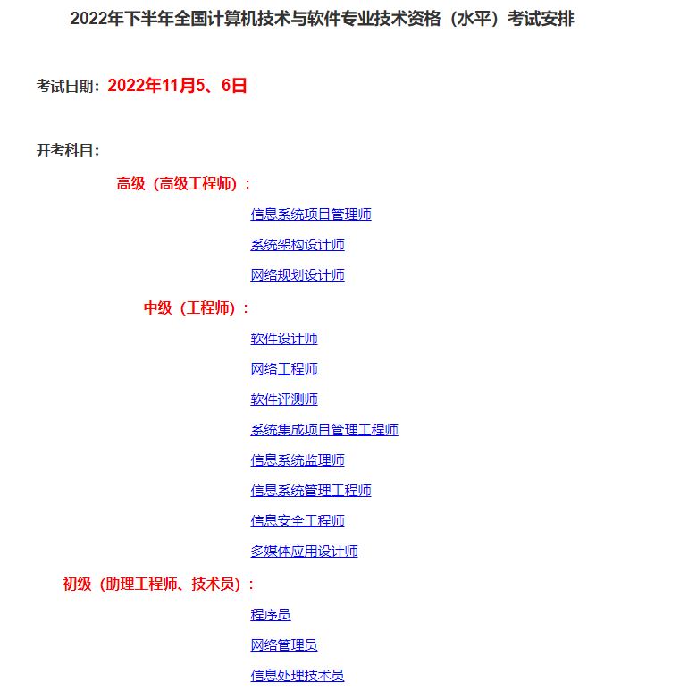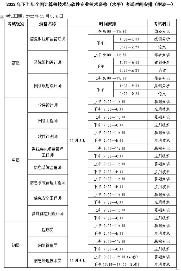 2022年下半年全國計(jì)算機(jī)技術(shù)與軟件專業(yè)技術(shù)資格(水平)考試(初級、中級、高級)將于11月5、6日舉行,現(xiàn)將云南省2022年下半年考試報(bào)名具體事項(xiàng)通知如下。
