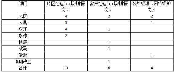 市場銷售崗位19人,網(wǎng)絡維護人員4人(年齡20-45歲,應屆畢業(yè)生優(yōu)先、有經(jīng)驗者優(yōu)先)
