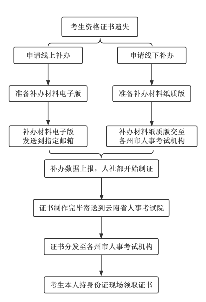 資格證書分發(fā)至各州市人事考試機(jī)構(gòu)后,省人事考試院將在云南人力資源和社會保障網(wǎng)人事考試專欄(http://hrss.yn.gov.cn/ynrsksw)發(fā)布相應(yīng)的“證書領(lǐng)取通知”,請考生及時(shí)關(guān)注。