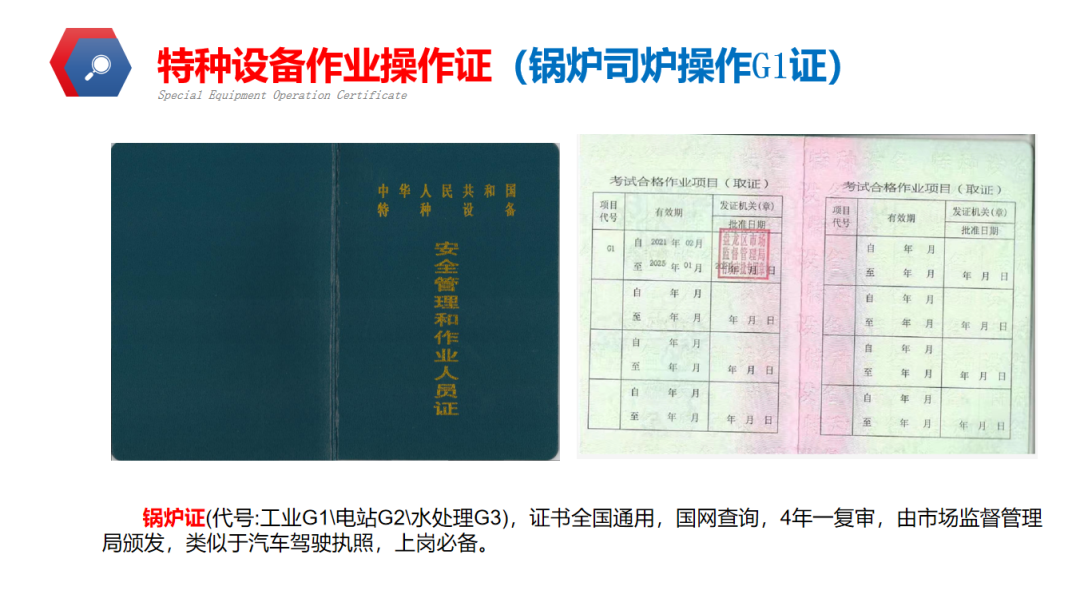G1證全稱為工業(yè)鍋爐司爐操作證,由市場監(jiān)督管理局(原質(zhì)監(jiān)局)頒發(fā),屬于特種設(shè)備作業(yè)人員資格證書,全國通用,國網(wǎng)可查