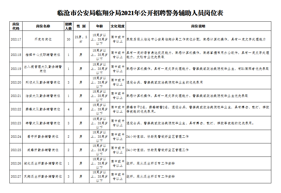 附:臨滄市公安局臨翔分局2021年公開(kāi)招聘警務(wù)輔助人員崗位表